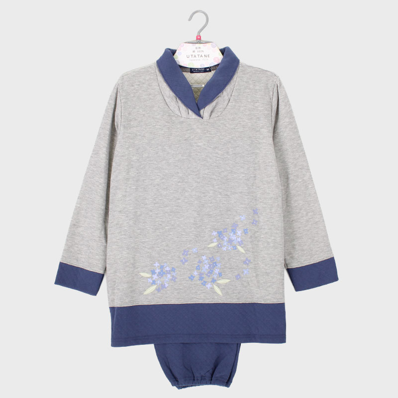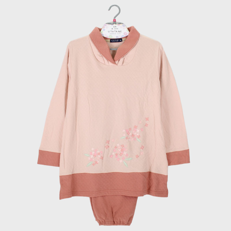 婦人『UTATANE』肌側綿100%ダイヤキルト衿付きTスーツパジャマ(金木犀)