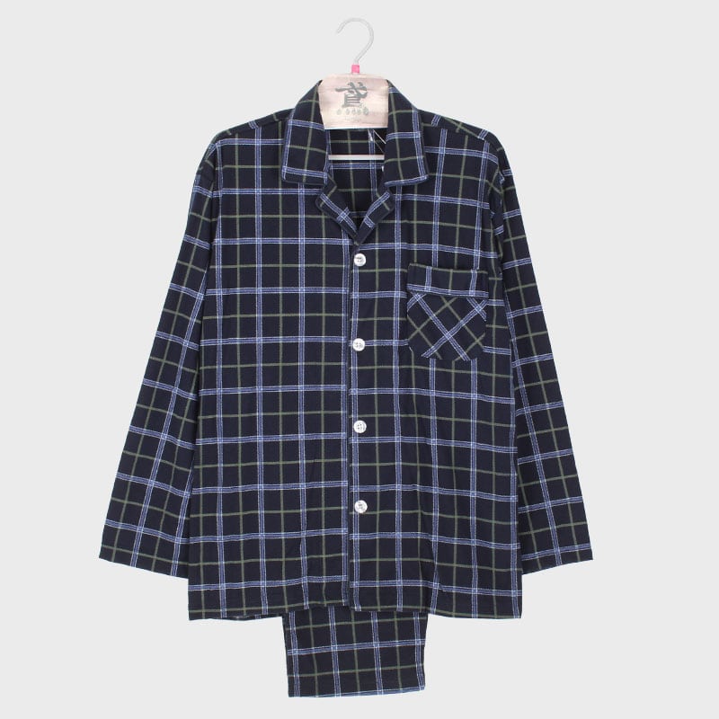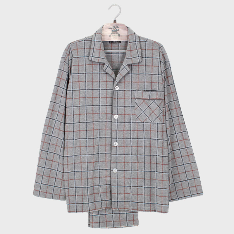 紳士E/Cスムース衿付前開きパジャマ(格子)