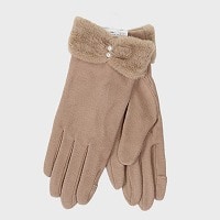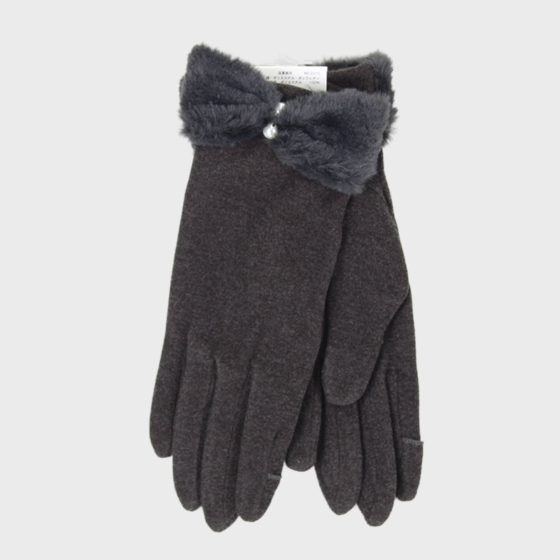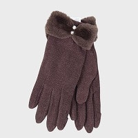 婦人手袋 スマホ対応『袖口エコファー パール付き』