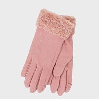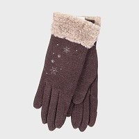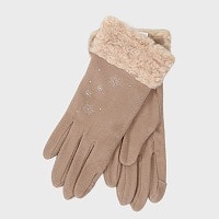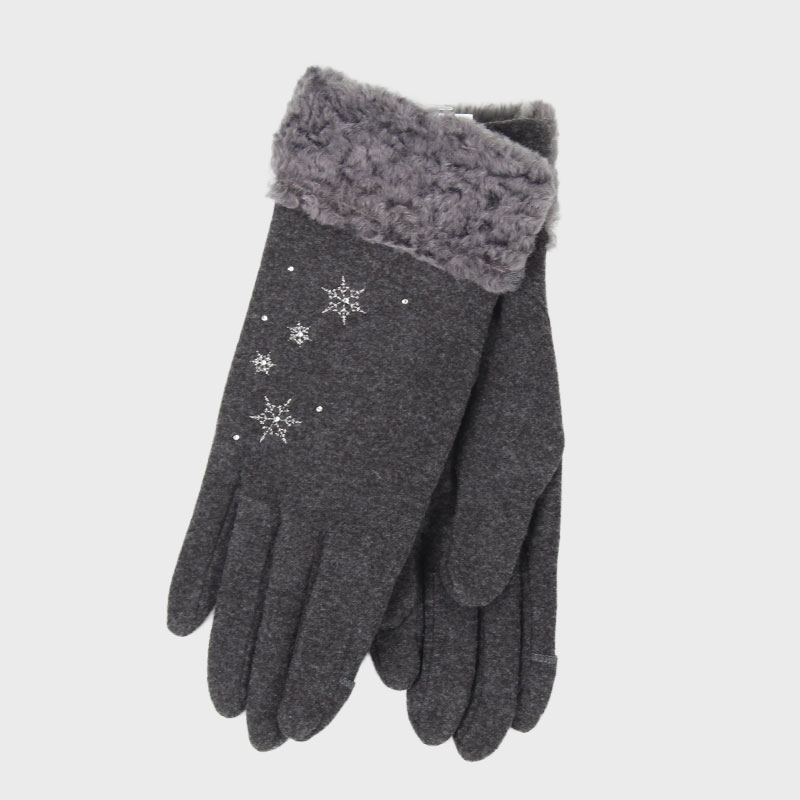 婦人手袋 スマホ対応『袖口ボア 雪柄 ラインストーン付き』