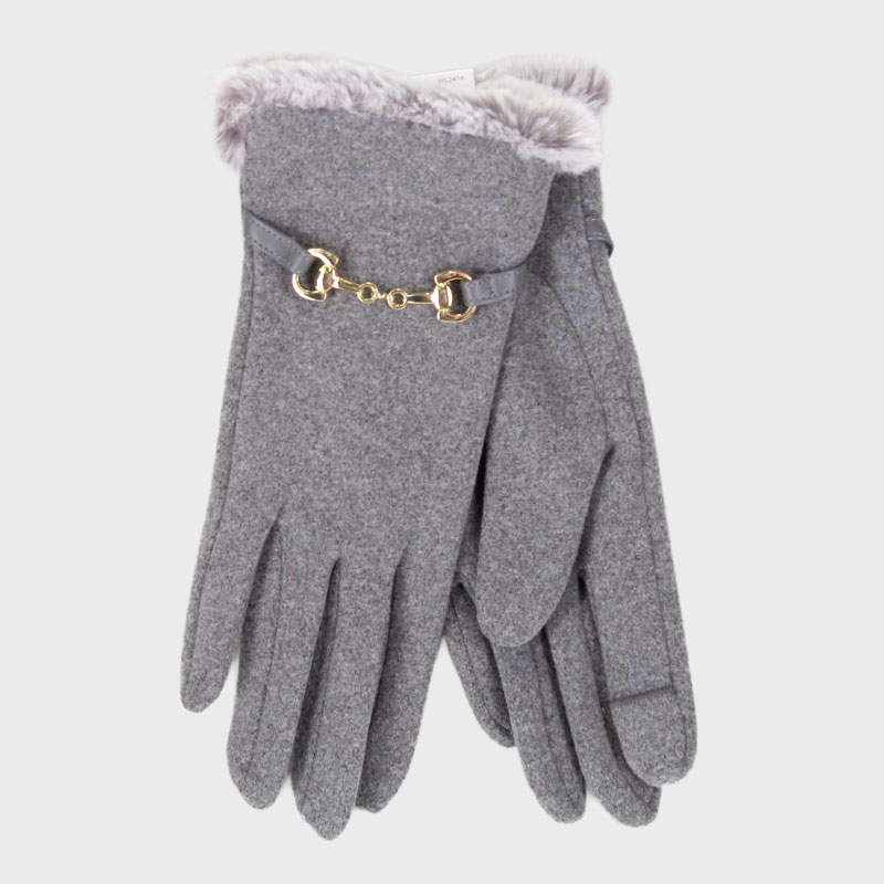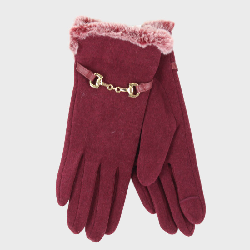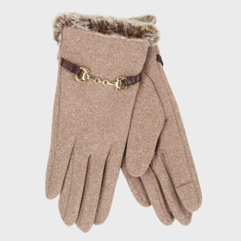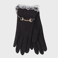 婦人手袋 スマホ対応『袖口エコファー 合皮ベルト ビット付き』