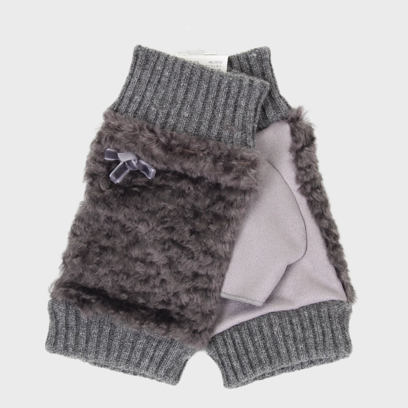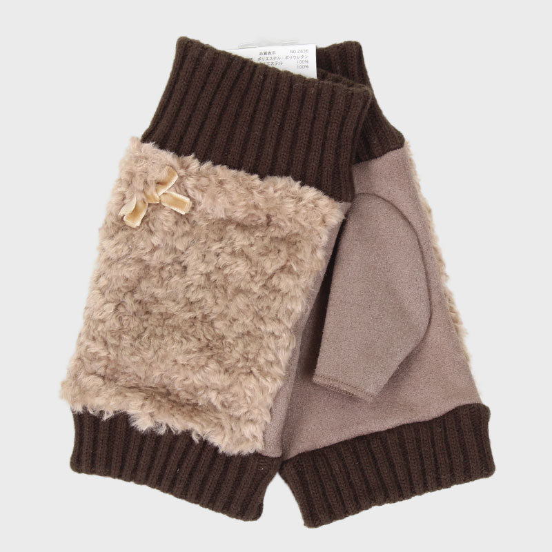 婦人手袋 アームウォーマー スエードタッチ『甲ボア ベロアリボン』