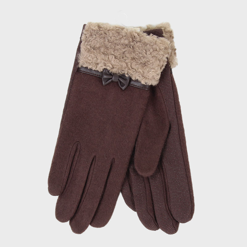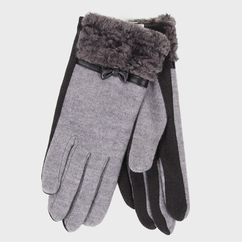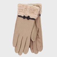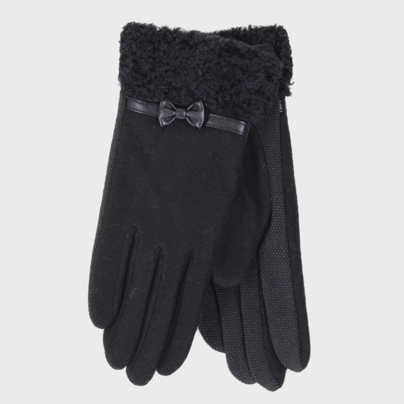 婦人手袋 防風 甲ボア 滑り止め付き『合皮ベルト 袖口ふわふわ』
