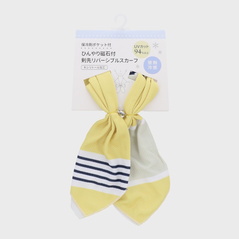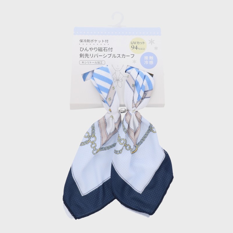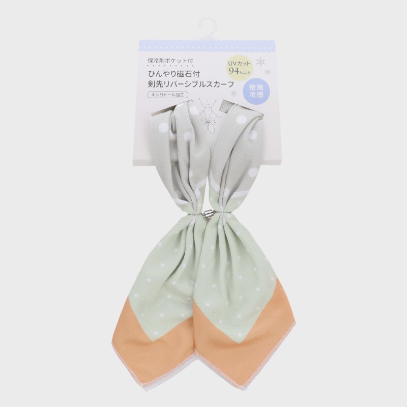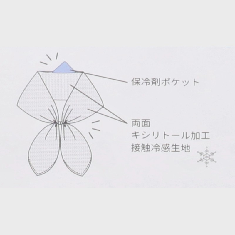 『冷感シリーズ』マグネット付きひんやり剣先RVスカーフ/保冷ポケット付き・キシリトール加工