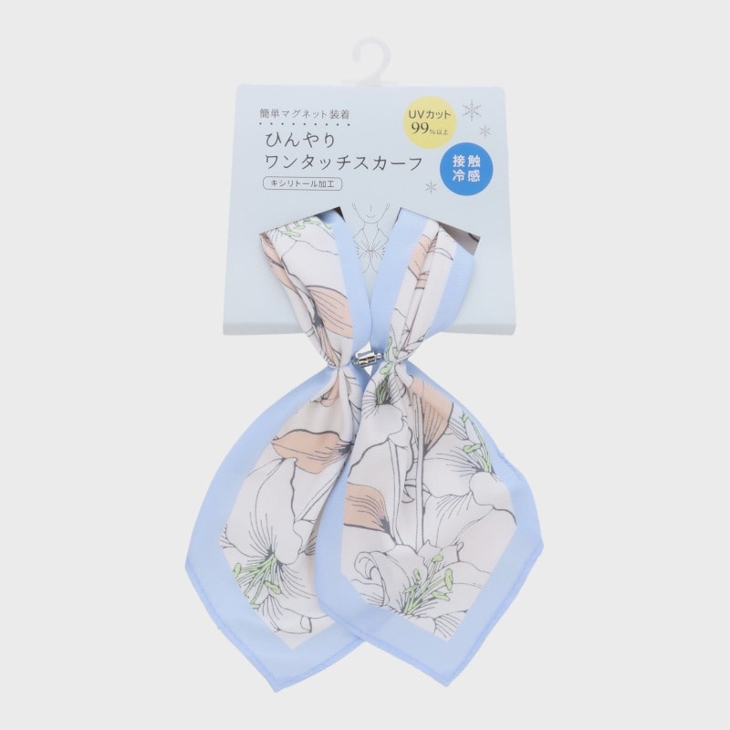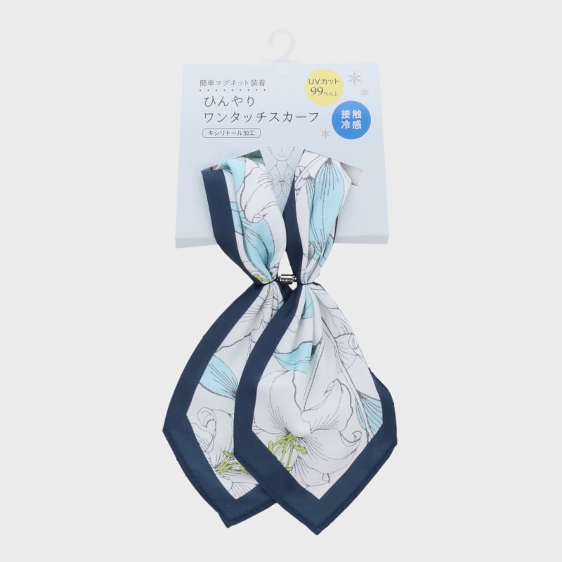 『冷感シリーズ』マグネット付きひんやりワンタッチUVスカーフ(ラインリリー柄)/UVカット率99%キシリトール加工