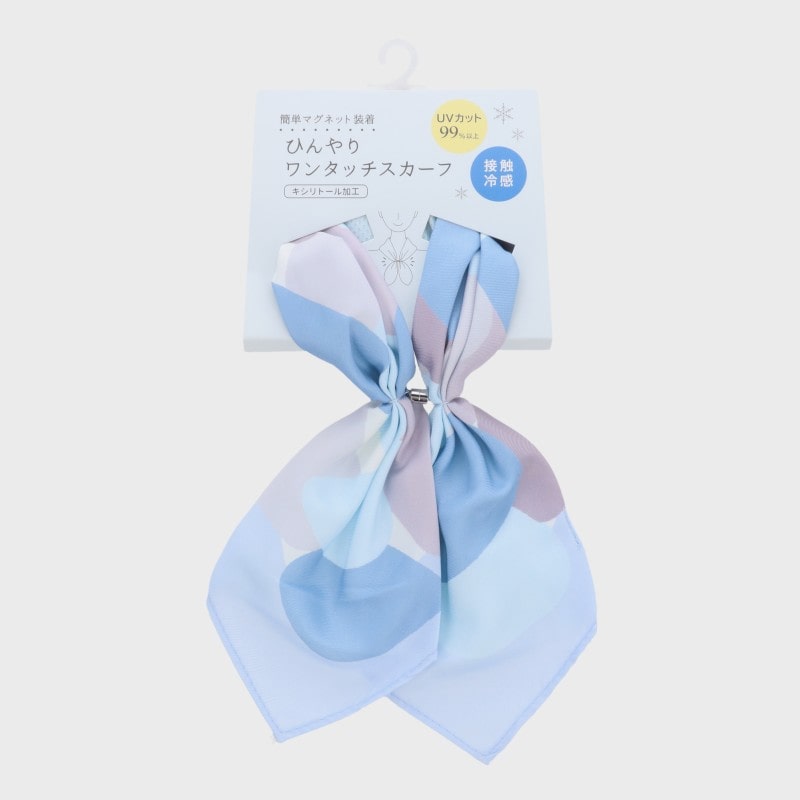 『冷感シリーズ』マグネット付きひんやりワンタッチUVスカーフ(レイヤーストーン柄)/UVカット率99%キシリトール加工