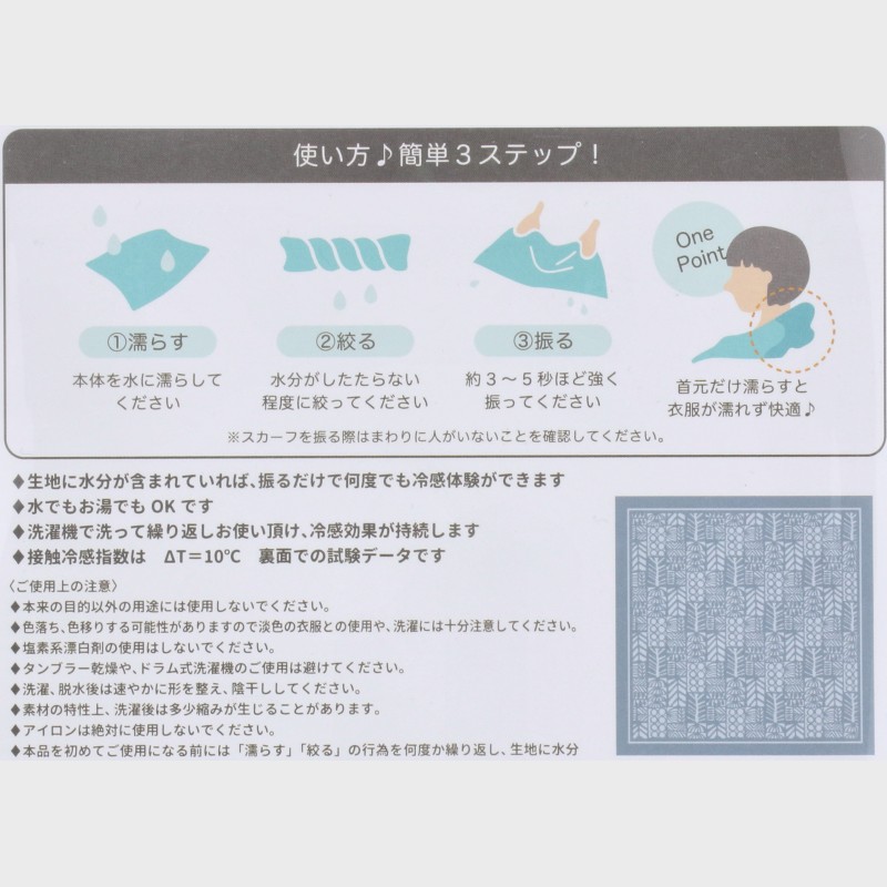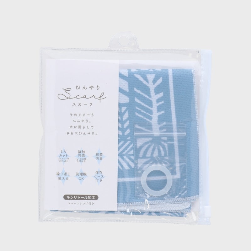 『ひんやりスカーフ』リング付きスクエアスカーフ(シンプル北欧柄)/ケース付き・UVカット・洗濯機OK