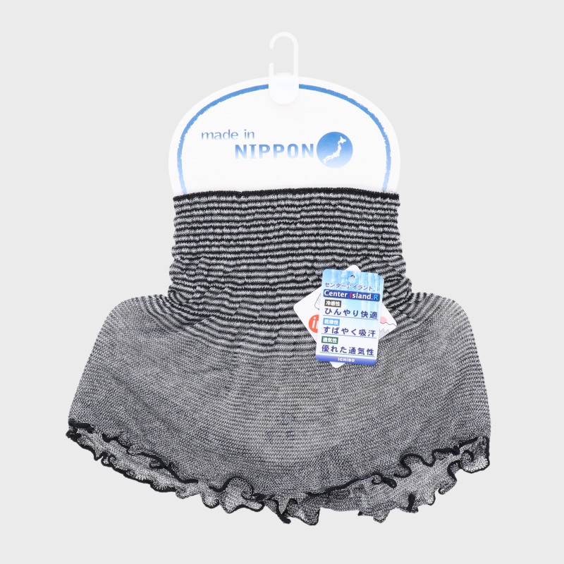 『日本製シリーズ』筒形フリルロングネックカバー(ボーダー)/通気性・冷感・吸汗機能
