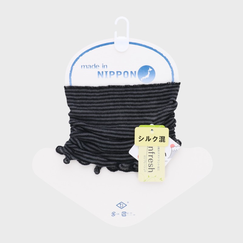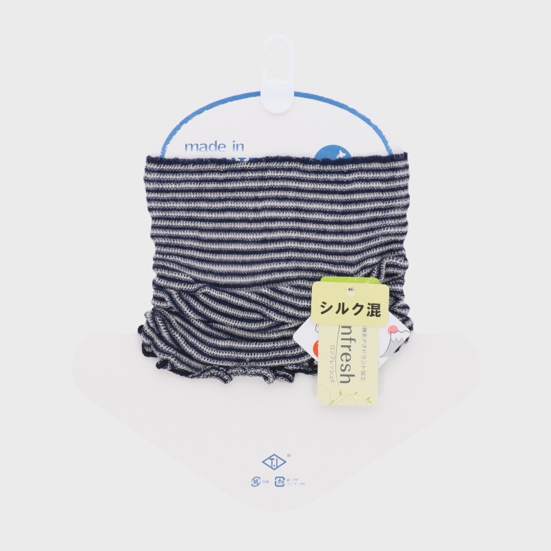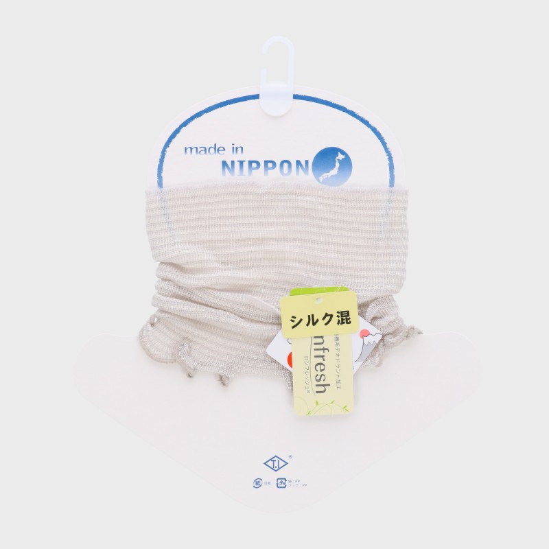 『日本製シリーズ』シルク混筒形ネックカバー(ボーダー)/天然有機系デオドラント加工