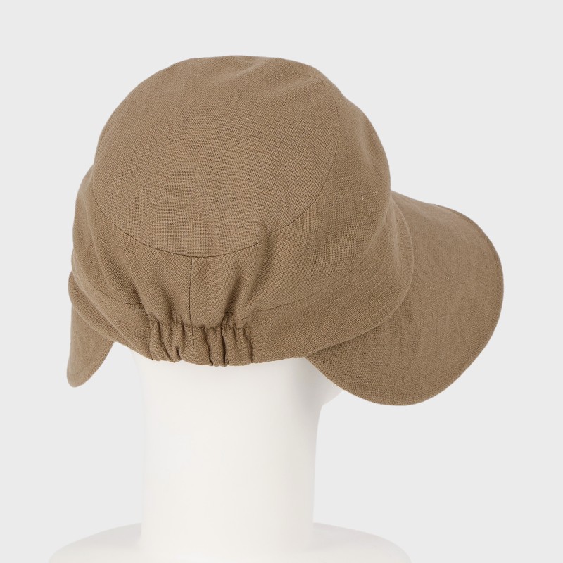 『ラクネンハット』防止ストラップ付き麻混すっぽりジョッキーハット/洗濯機洗い可・UPF50+