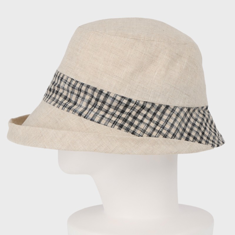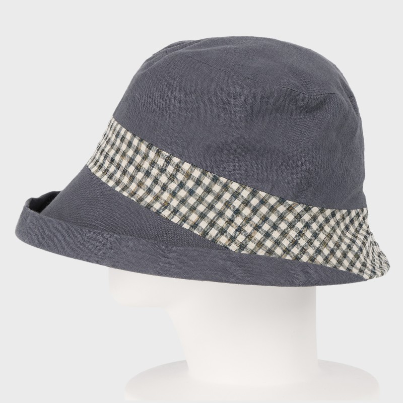リネンサンドウォッシュオブザーハット(ギンガム)/サイズ調節可・抗菌防臭・吸水速乾