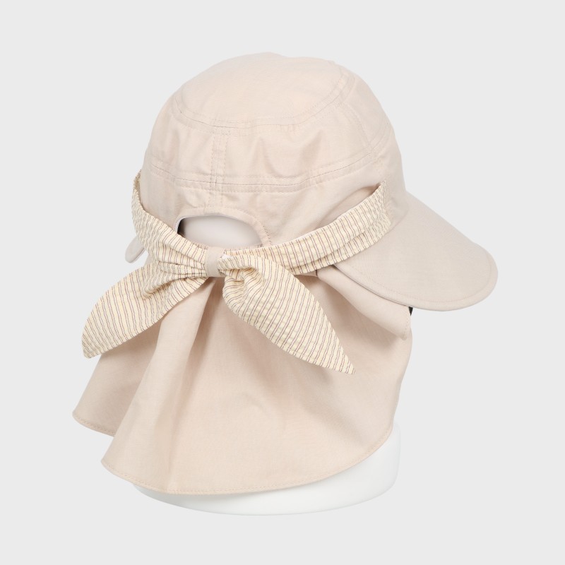 『marie claire/bis』タレ付きストライプ柄ジョッキー/あご紐付き・UV90%カット・洗濯機洗い可能