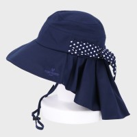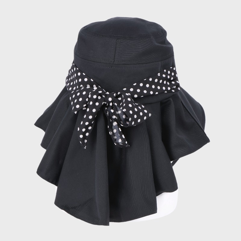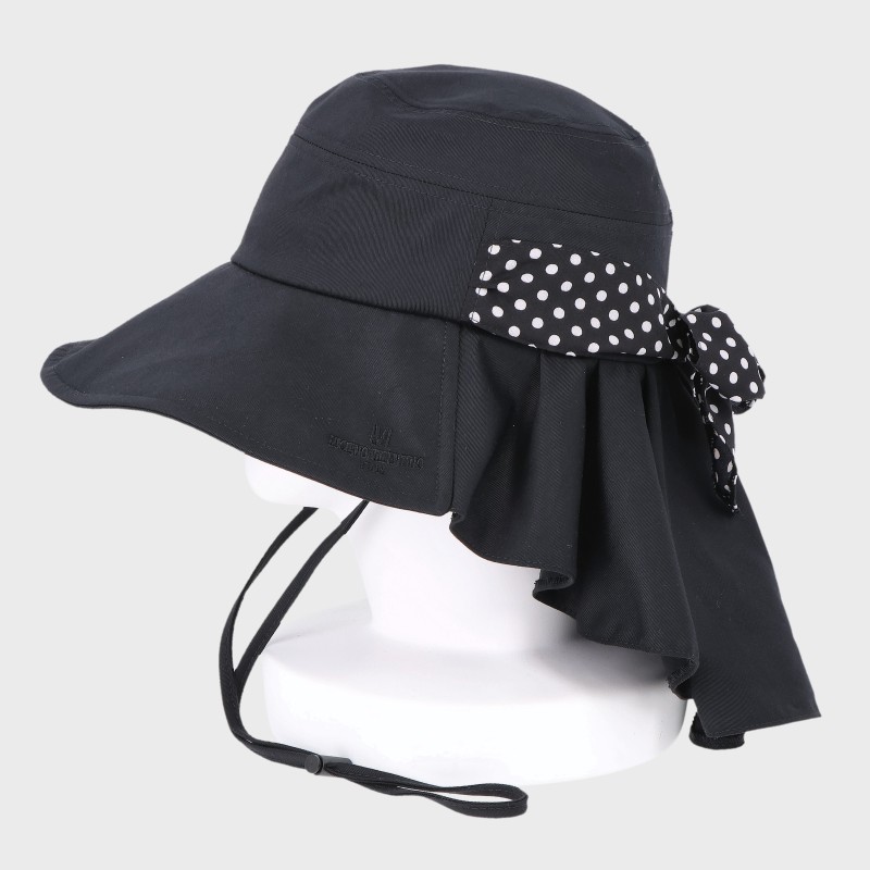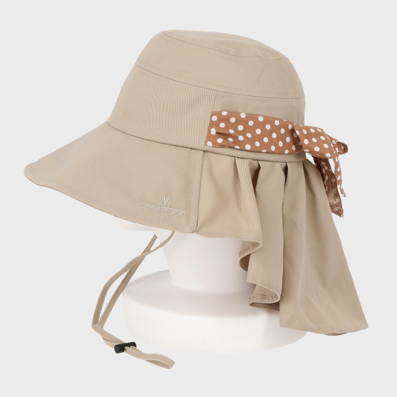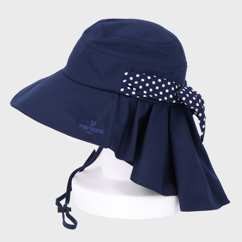 婦人『LUCIANO VALENTINO』体感-10℃・タレ付きハット(ドット柄)/遮光遮熱・サイズ調節可能・あご紐付