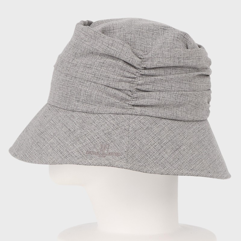 『LUCIANO VALENTINO 』刺しゅうロゴ入りサイド絞りデザインハット/吸水制電接触冷感素材ビスクール使用