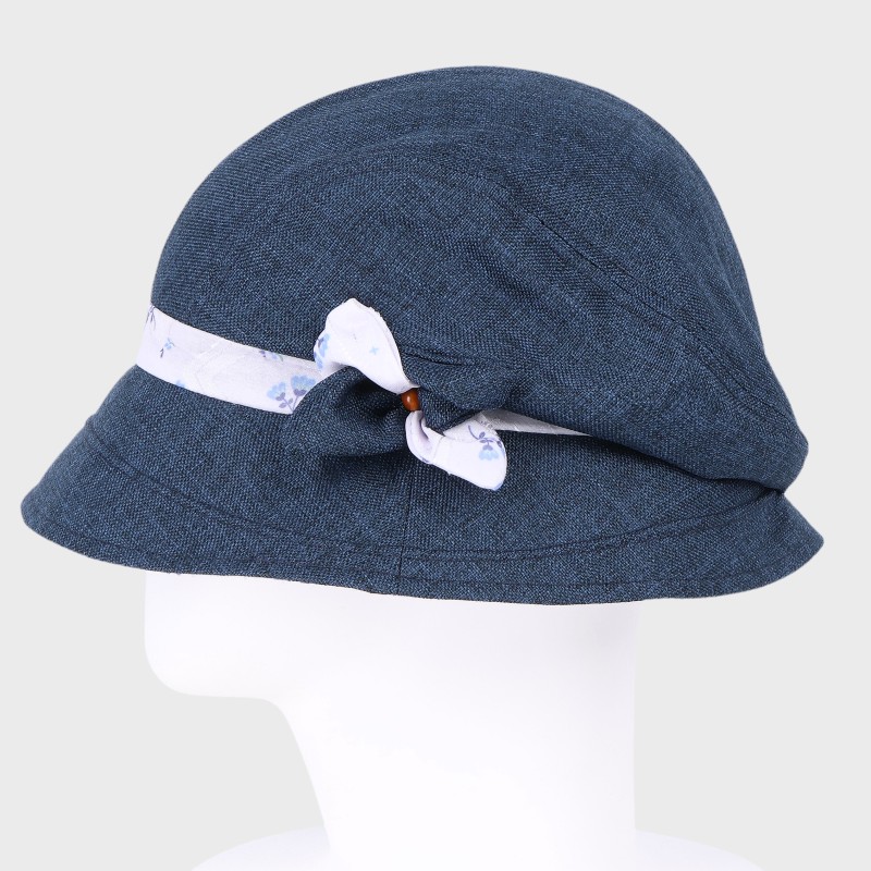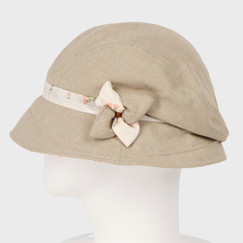 『LUCIANO VALENTINO』つば裏プリントコサージュ付きキャスクロッシェ/吸水・制電・接触冷感素材ビスクール使用