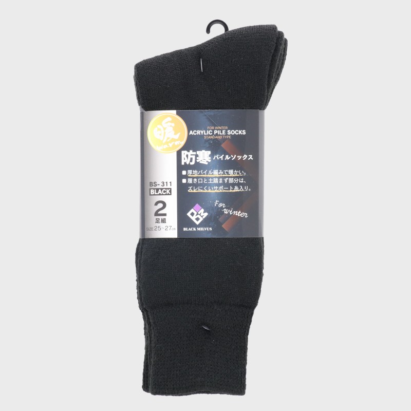 紳士防寒パイルソックス 先丸2足組(BS-311)『BLACK MILVUS』