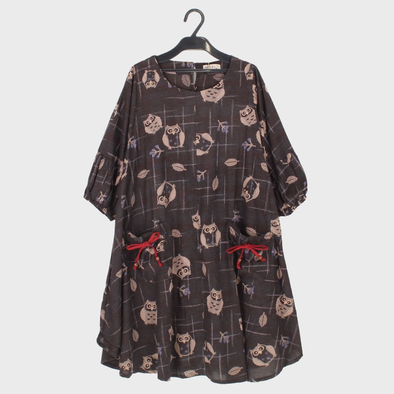 大西衣料(株)が運営する、【公式】卸・仕入れサイト『SELF WEB SHOP』で 婦人はんなりフレアワンピース(ふくろう) をお仕入れ!