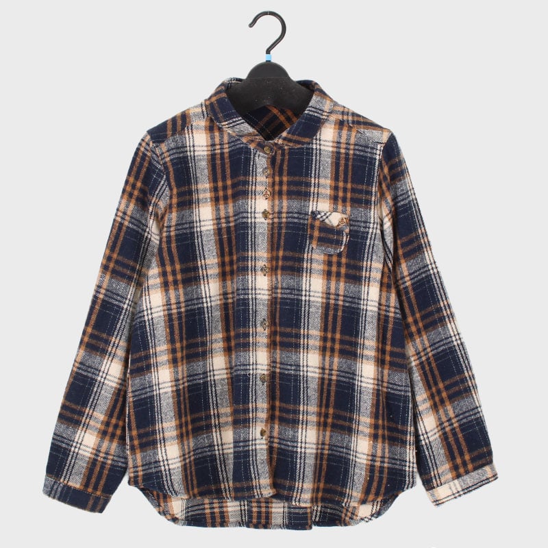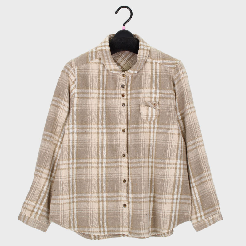 婦人紡毛飾りポケット付ちび衿ブラウス