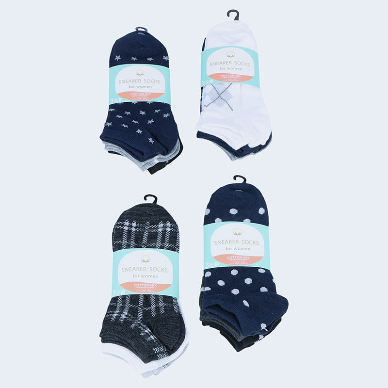 婦人綿混スニーカーソックス3足組「A」