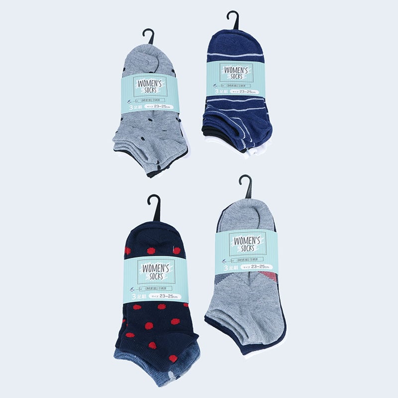 婦人綿混スニーカーソックス3足組「B」