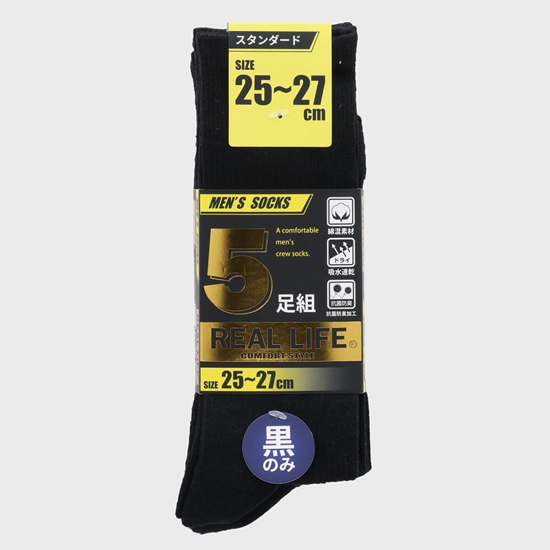 紳士綿混リブクルーソックス5足組(黒)25−27cm