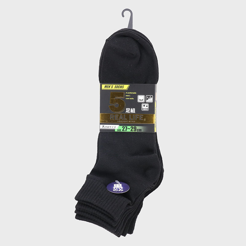 紳士綿混スニーカーソックス5足組(黒)27−29cm