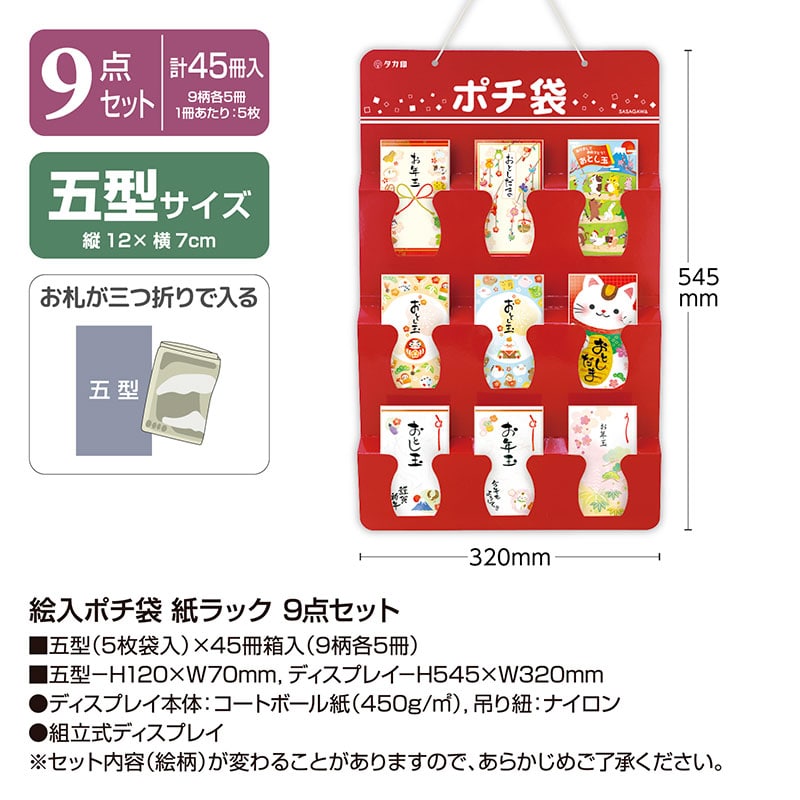 大西衣料(株)が運営する、【公式】卸・仕入れサイト『SELF WEB SHOP』で 絵入ポチ袋 紙ラック 9点セット《WEB》 をお仕入れ!