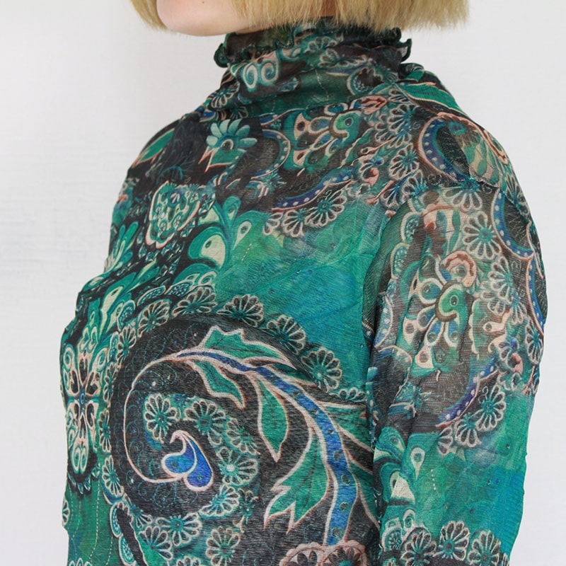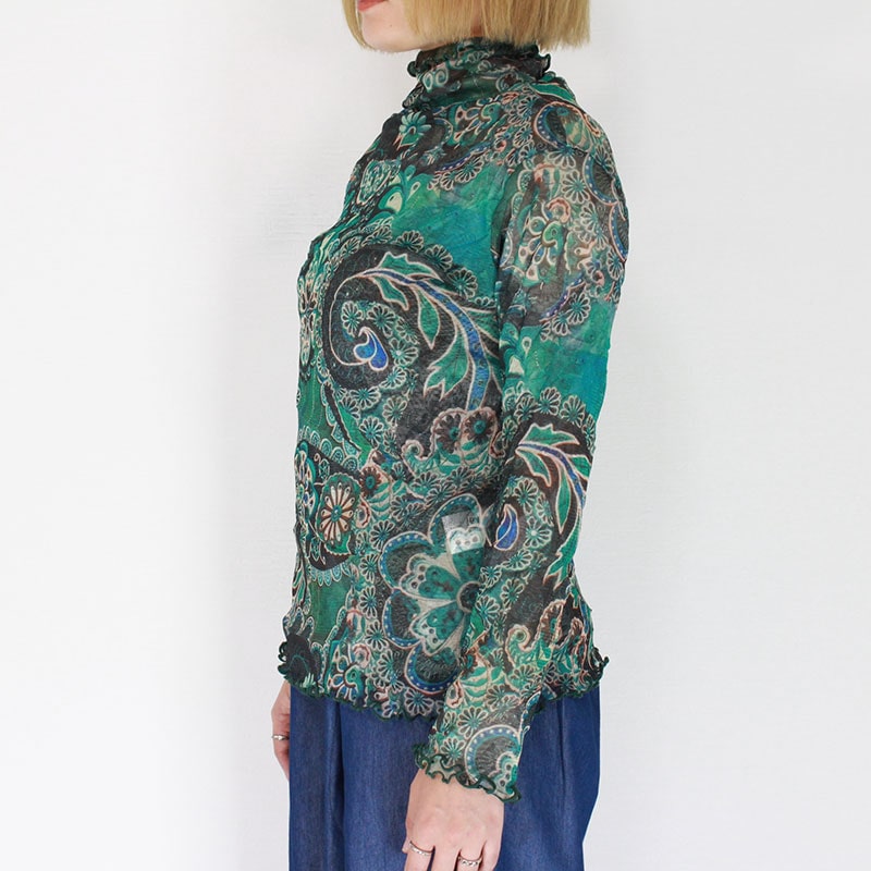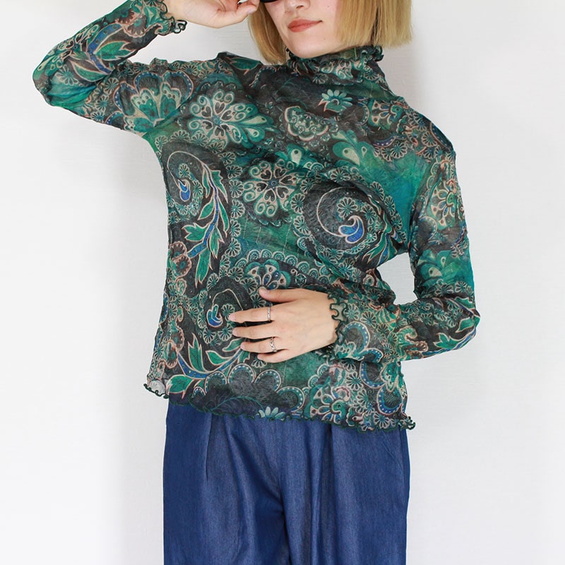 婦人メロー仕上げパワーネットシアートップス フラワーペーズリー/ミッソーニ風