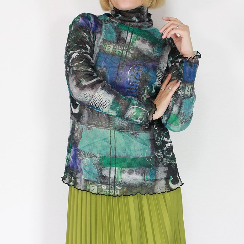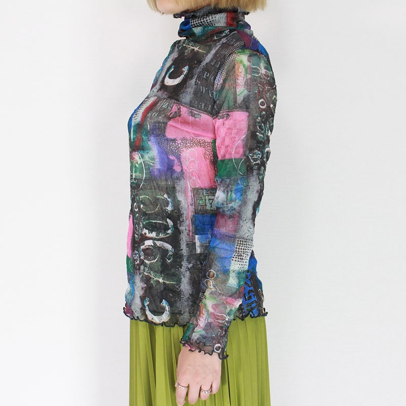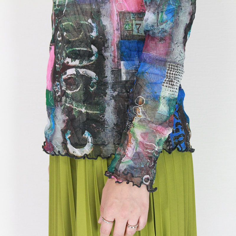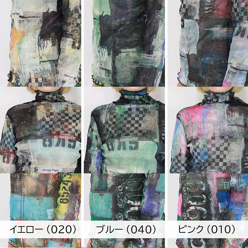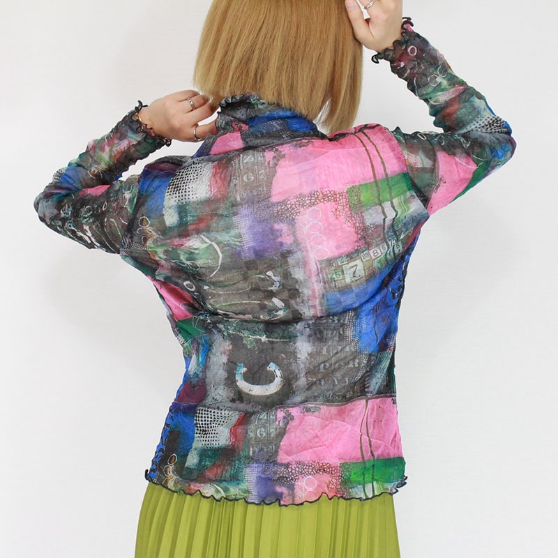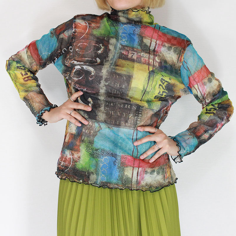 婦人メロー仕上げパワーネットシアートップス コラージュプリント