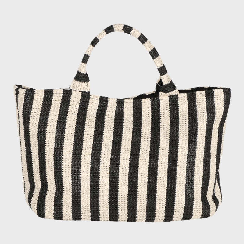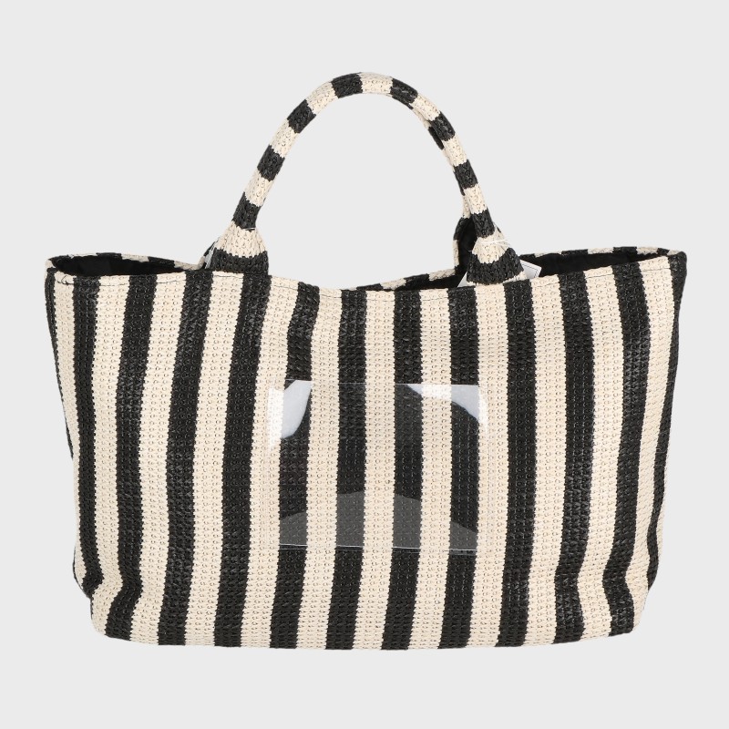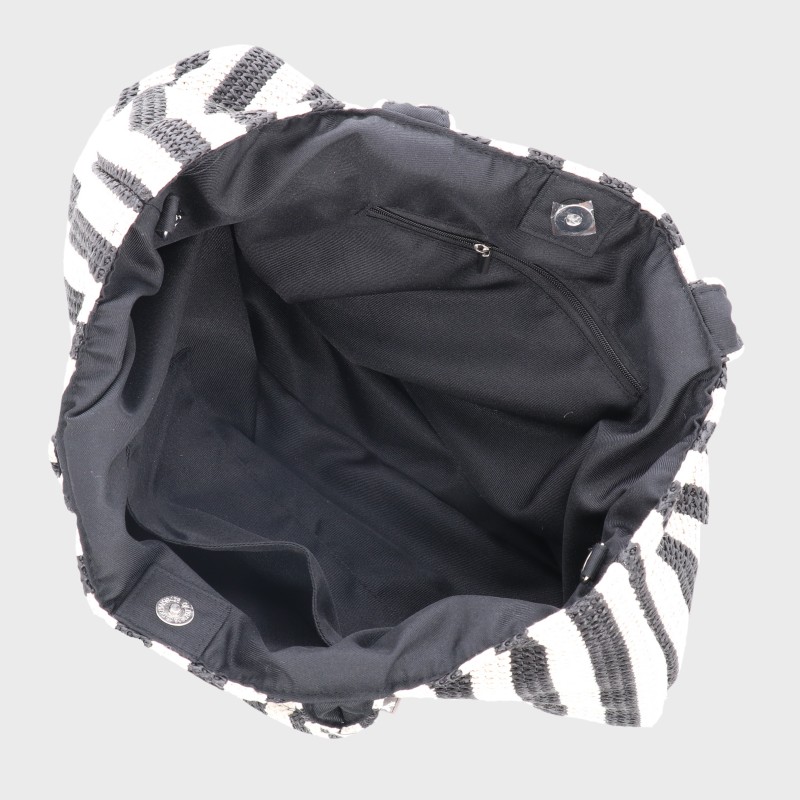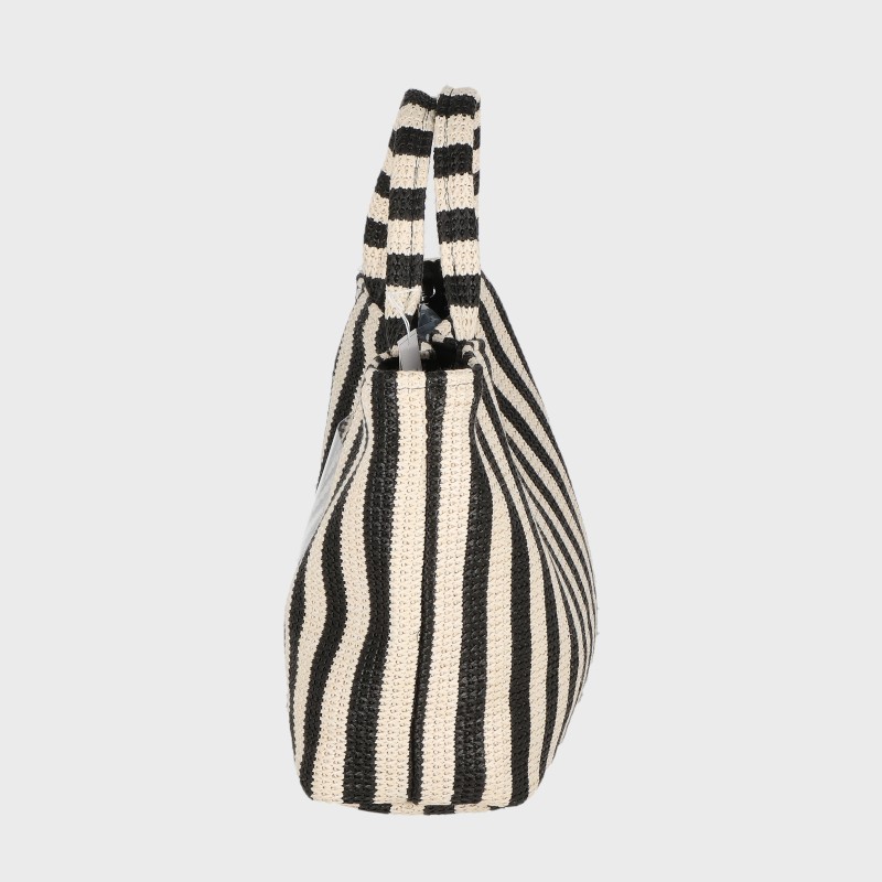大西衣料(株)が運営する、【公式】卸・仕入れサイト『SELF WEB SHOP』で 婦人モノトーンストライプ雑材バッグ をお仕入れ!