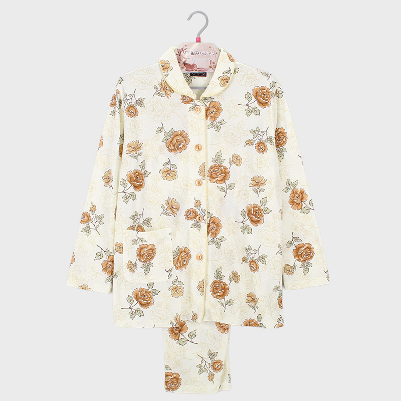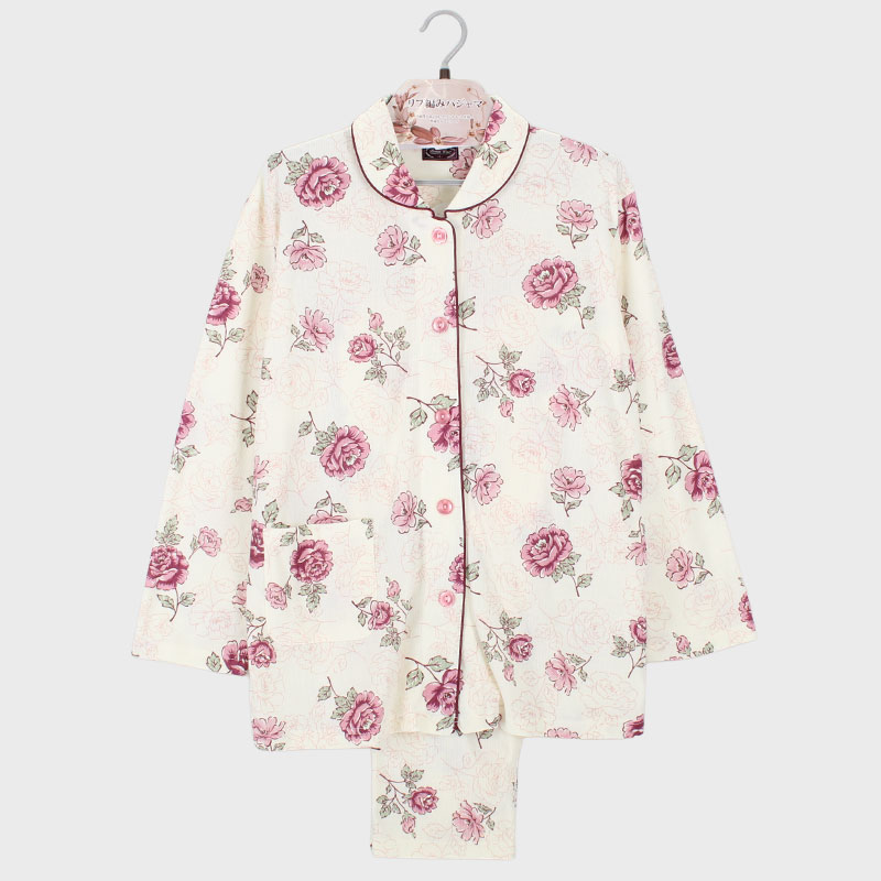 婦人E/Cリブ編みスムース衿付きパジャマ(花柄)
