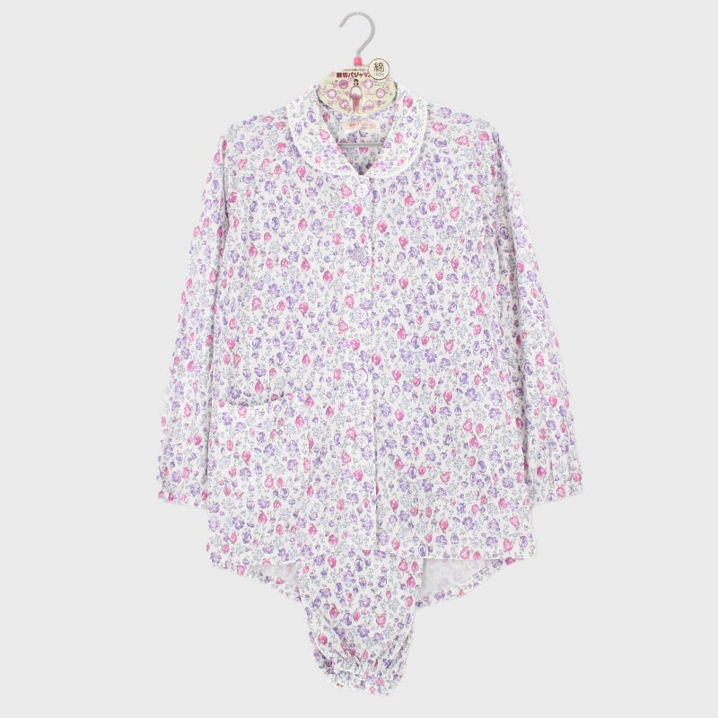 婦人『親切パジャマ』綿天竺ラグラン袖前開きパジャマ
