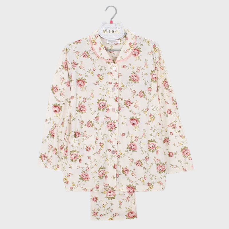婦人『ORIZURU』綿天竺衿付前開きパジャマ