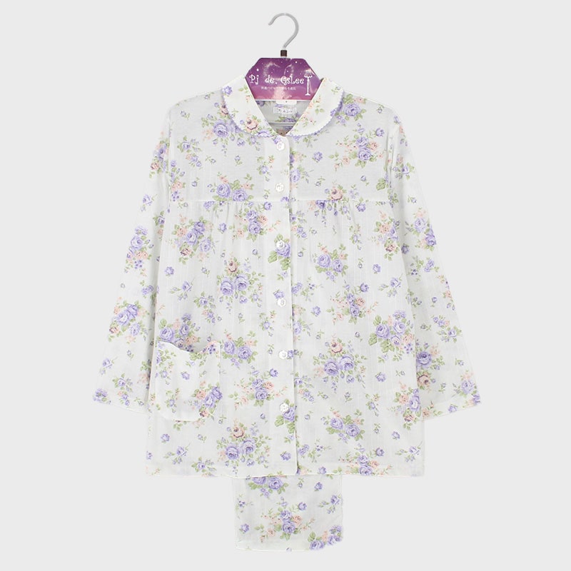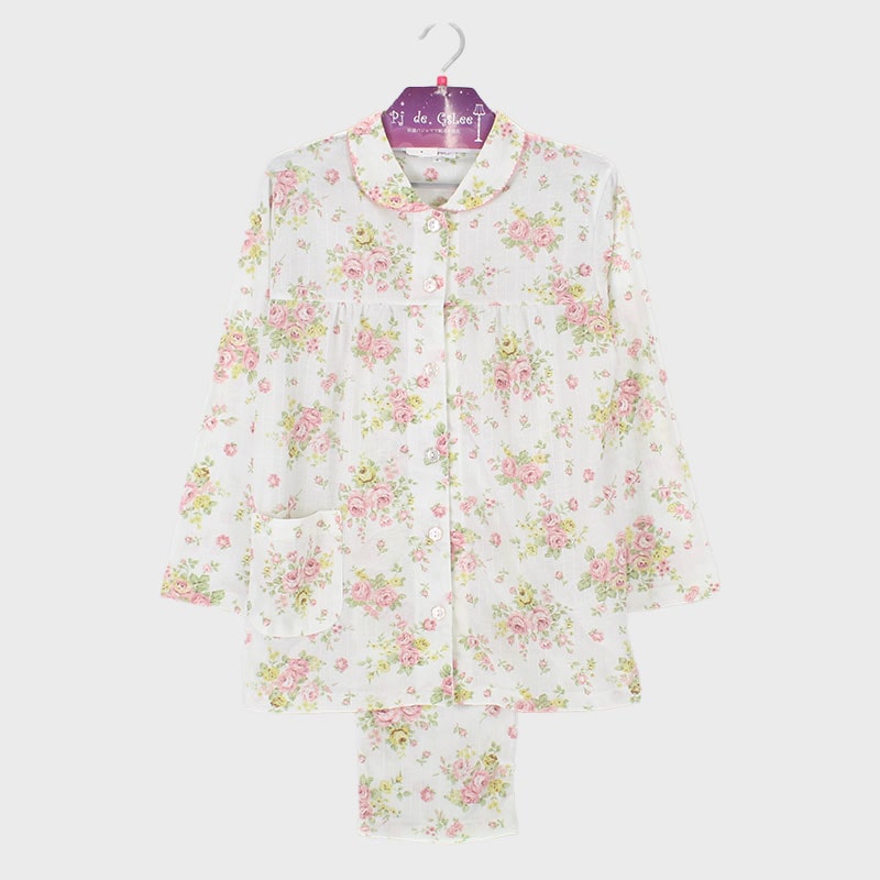 婦人E/Cブライト天竺衿付前開きパジャマ(中花)