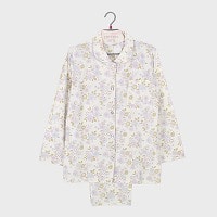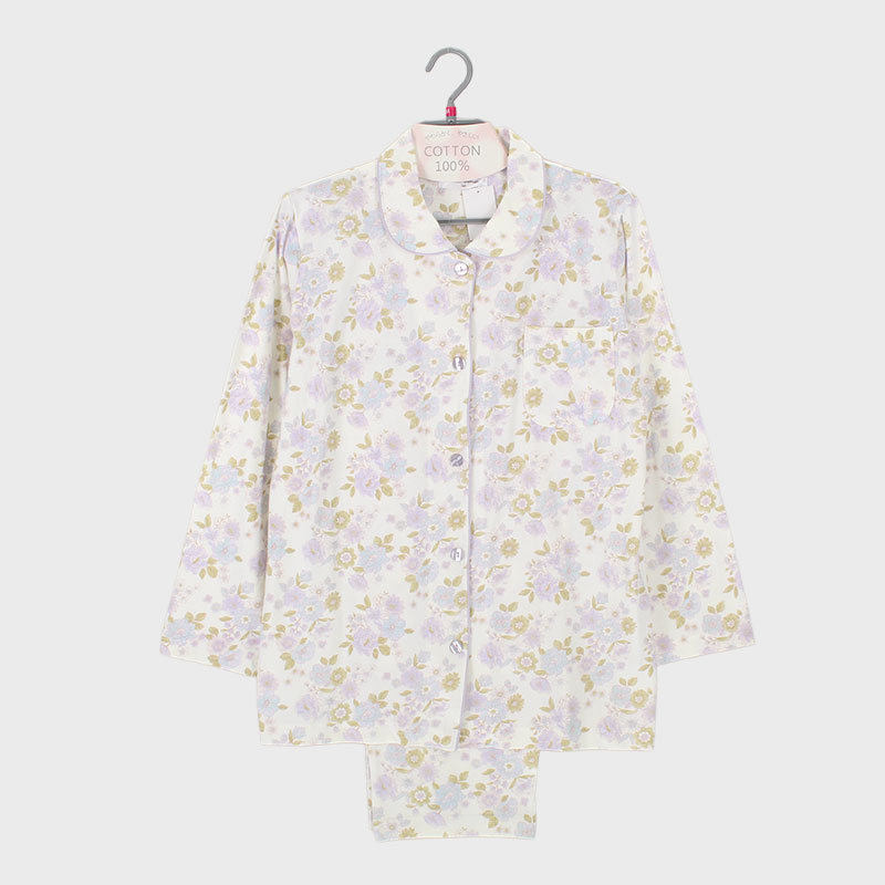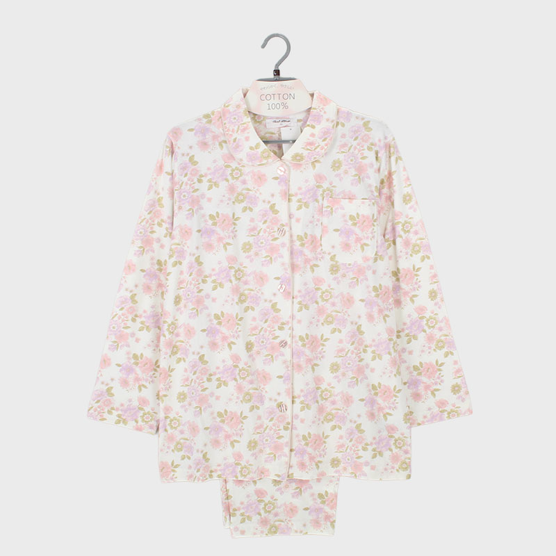 婦人綿100%天竺衿付き長袖パジャマ(花柄)
