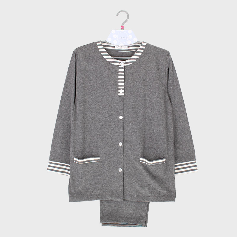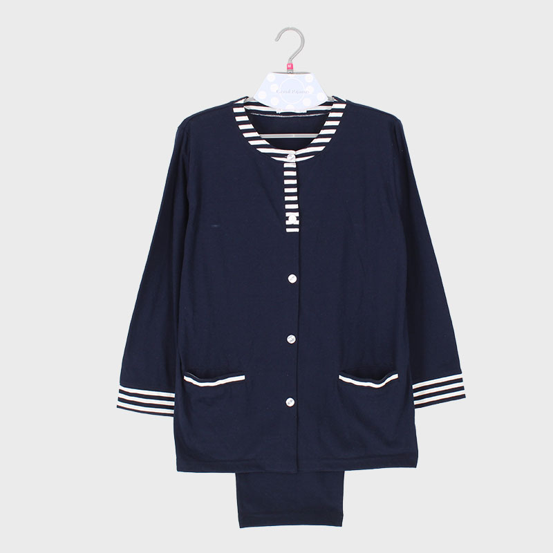 婦人天竺衿なし長袖パジャマ(無地×ボーダー)