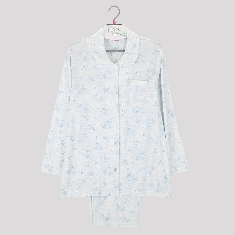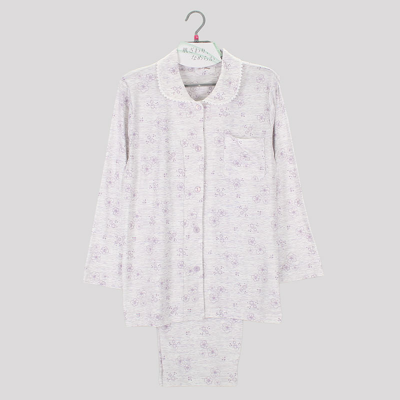 婦人ストレッチ天竺衿付き長袖パジャマ(杢調花)