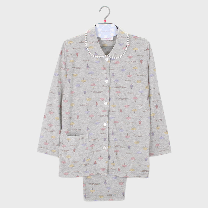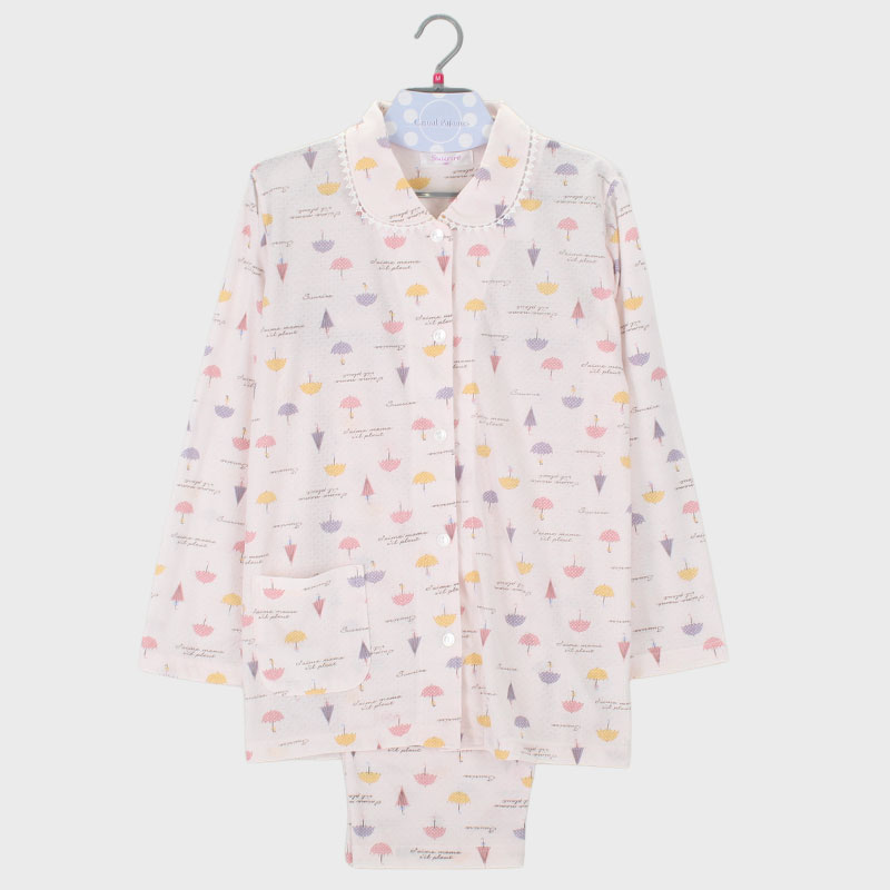 婦人TC針抜天竺衿付き長袖パジャマ(かさ)
