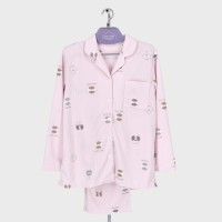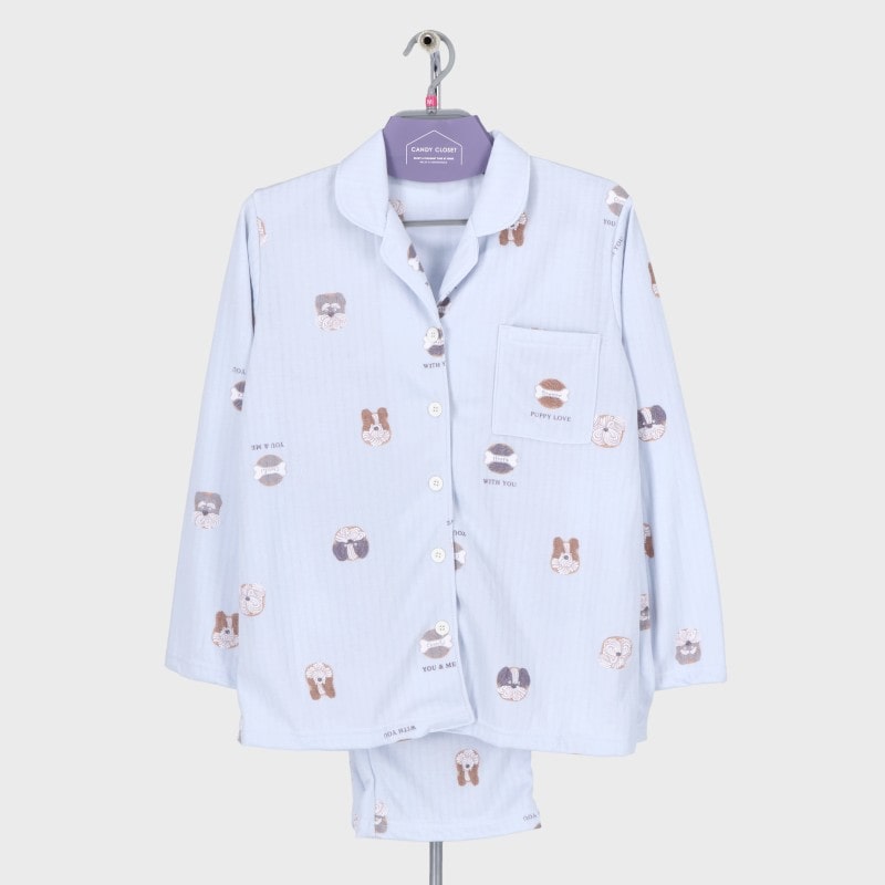 婦人『Candy Closet』ストライプキルト衿付き前開きパジャマ(ドッグクッキー)