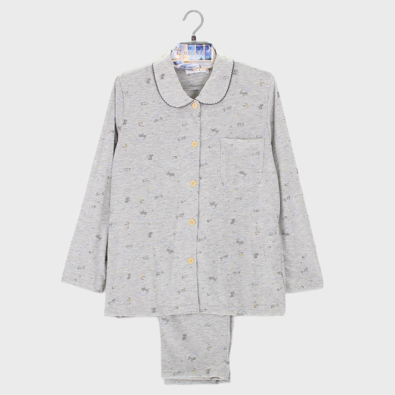 婦人天竺衿付き長袖パジャマ(ネコ)