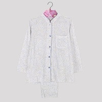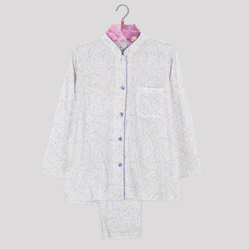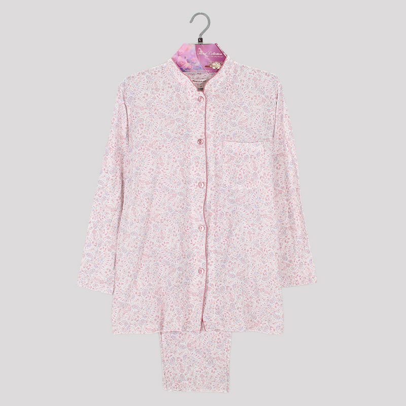 婦人綿100%天竺マオカラー長袖パジャマ(カラフルペーズリー)