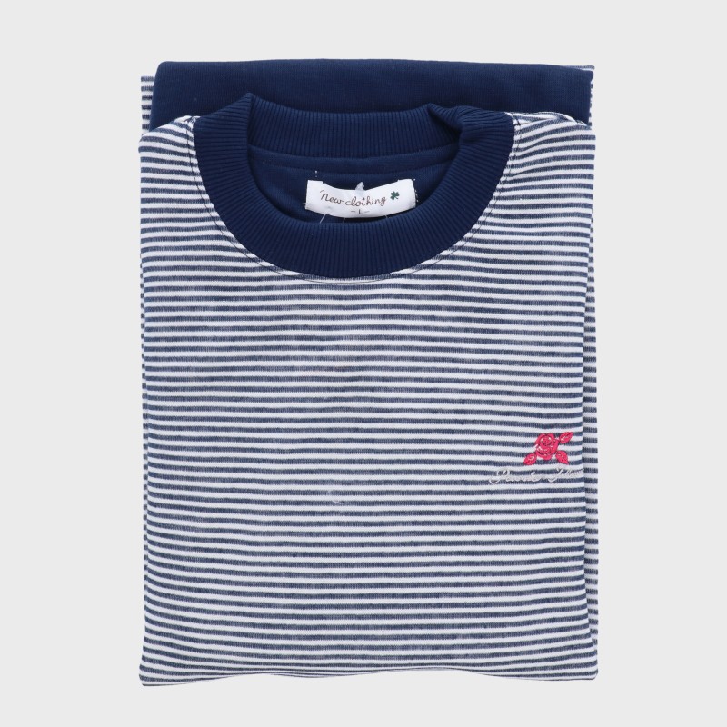 婦人E/Cダンボール丸首Tスーツパジャマ(ボーダーワンポイント柄))