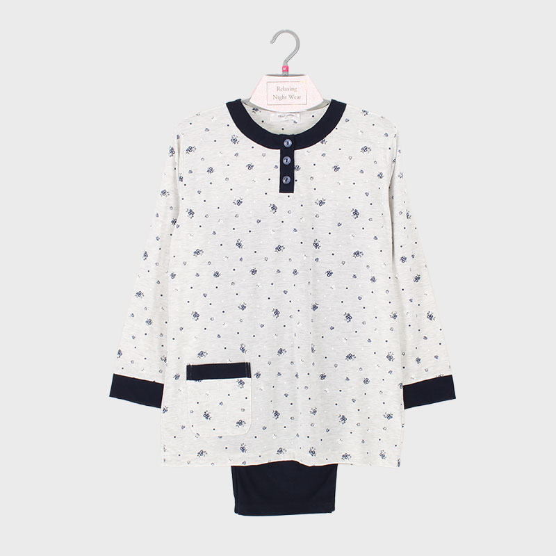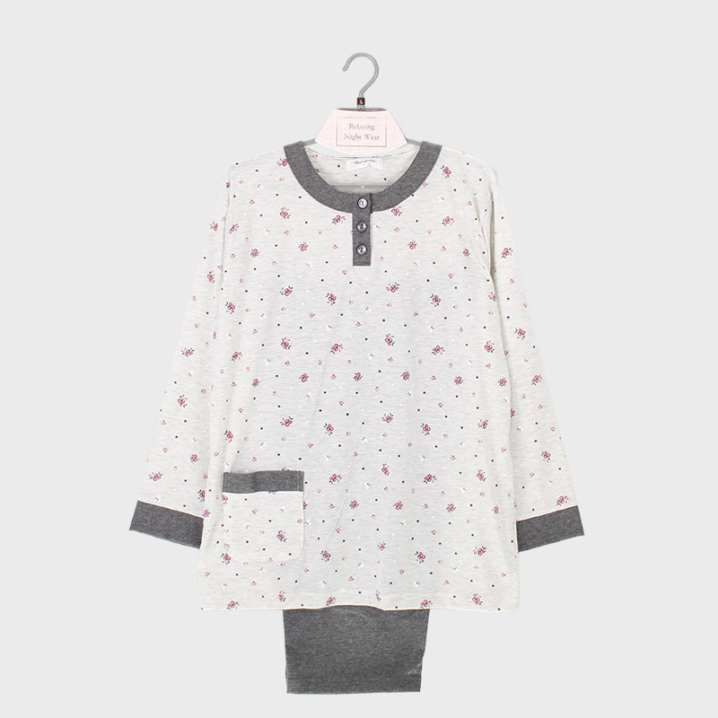 婦人天竺ヘンリーネックTスーツ(小花ドット)