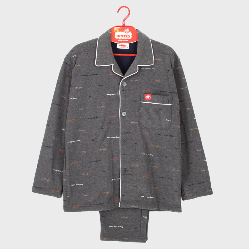 紳士『ホカロン』シャギー衿付き前開きパジャマ(タイボグラフィ−柄)