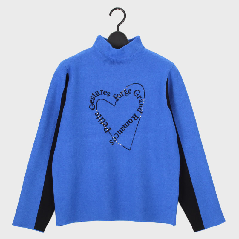 大西衣料(株)が運営する、【公式】卸・仕入れサイト『SELF WEB SHOP』で 婦人ニット「ロゴハートラインストーン」 をお仕入れ!