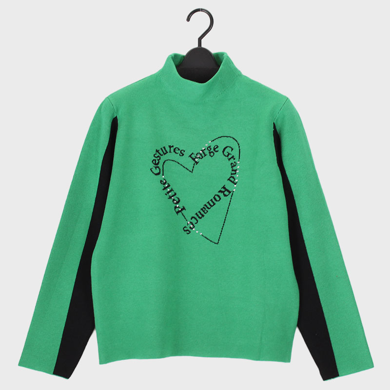 婦人ニット「ロゴハートラインストーン」
