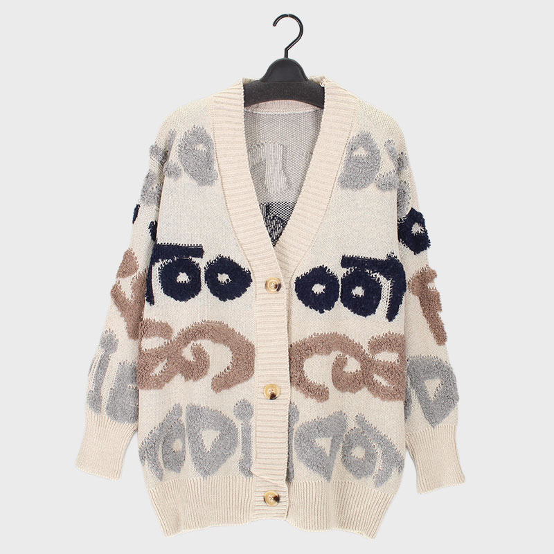 大西衣料(株)が運営する、【公式】卸・仕入れサイト『SELF WEB SHOP』で 婦人ニットカーディガン(英字デザイン) をお仕入れ!