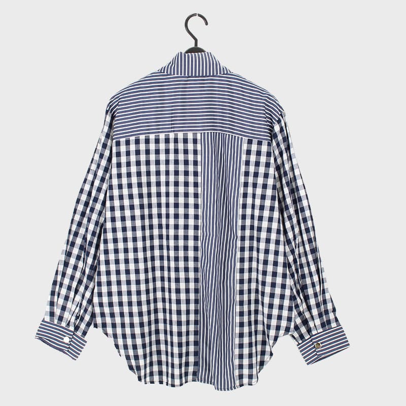 婦人『K Three』チェック柄×ストライプ柄 デザインシャツ