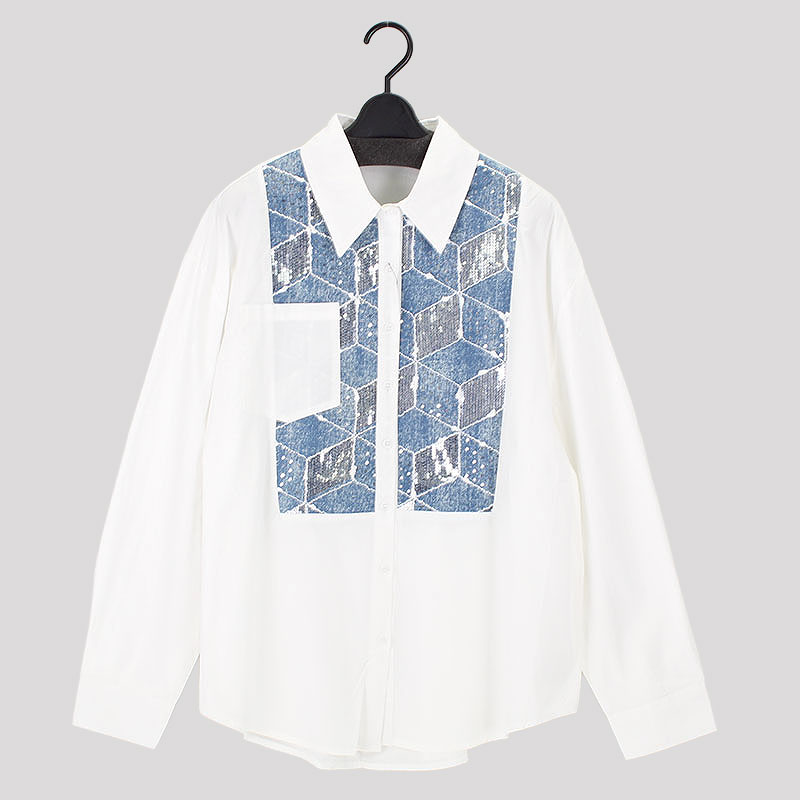 大西衣料(株)が運営する、【公式】卸・仕入れサイト『SELF WEB SHOP』で 婦人『K Three』デニム切替スパンコール付 デザインシャツ をお仕入れ!