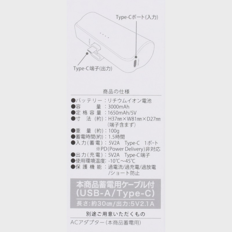 大西衣料(株)が運営する、【公式】卸・仕入れサイト『SELF WEB SHOP』で 3000mAh モバイルバッテリー(Type−C) をお仕入れ!
